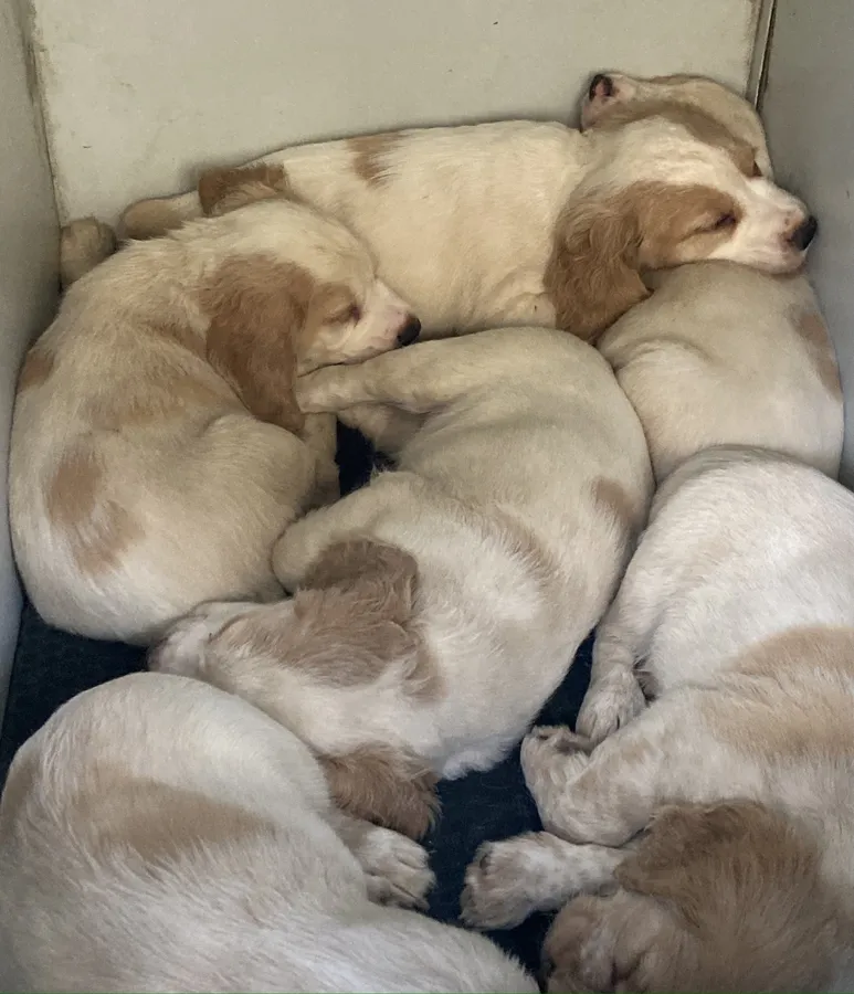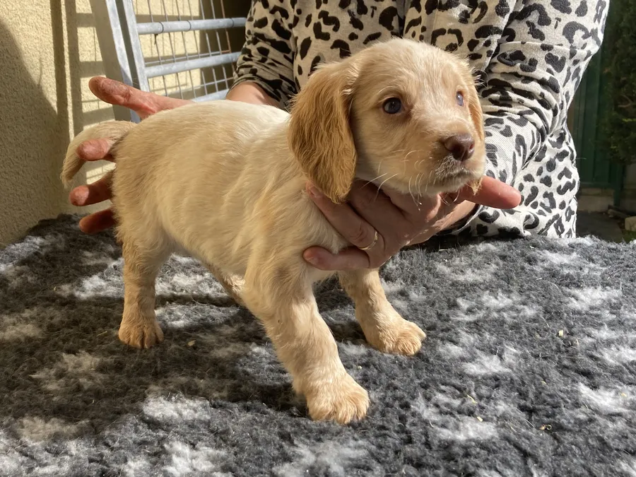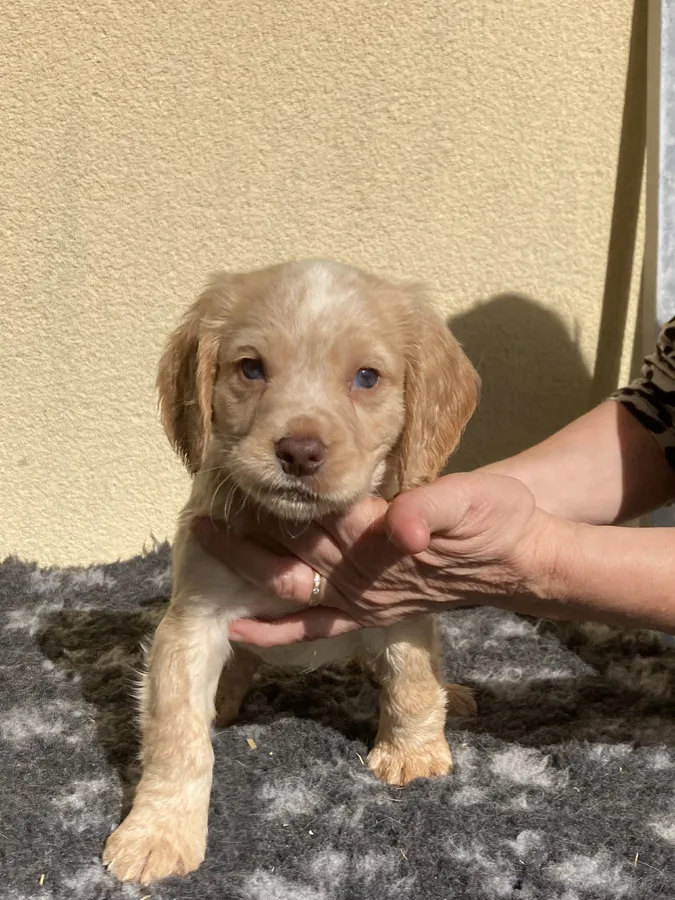 Younger pups DOB 10/8/25 Dam is Pondizfields Snowdon, kennel name Bracken PRA, FN AMS clear, who is a lemon roan carrying blue, half sister to Grace. 29ftch 8ftw in her pedigree. A stunning looking girl with exceptional intelligence and natural but controlled hunting instinct.