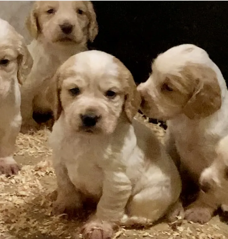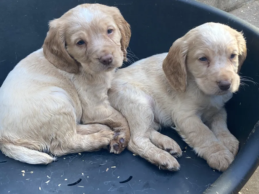 Eldest pups - we presently have available 1 Lemon white female and 3 lemon white males - DOB 2/8/25, Mother is Grace, KC name Cwmceiliog Blodwen, PRA, FN, AMS clear, 30 FTCh 7 Ftw in her pedigree with majority of her dna make up Maesydderwen Bloodlines. Grace Forms a significant role within our 6 days a week picking up team, controllable but excellent drive, excellent nose, hunting instinct and phenomenal retriever.