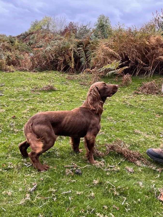 He hunts and quarters up, handles back, left and right, has been shot over and is steady to the flush.  Very good all round dog for his age, he has been produced with a view to compete, but is just lacking a bit of speed.
