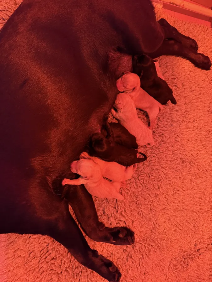Ftch sired puppies arrived 27th October 2025, both black & yellow 3 black bitches, 2 yellow bitches, and 3 yellow dogs.