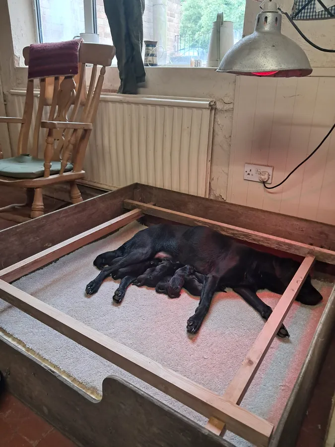 Twonk (mum) has had a litter of 9 beautiful black puppies, this is her first litter and was bred to keep the bloodline for ourselves as she is a cracking working dog both beating and picking up. Dad is also a strong working dog, both parent's are KC registered with superb hip (mum 6 dad 7) and perfect elbow scores (mum and dad both 0 for elbows)