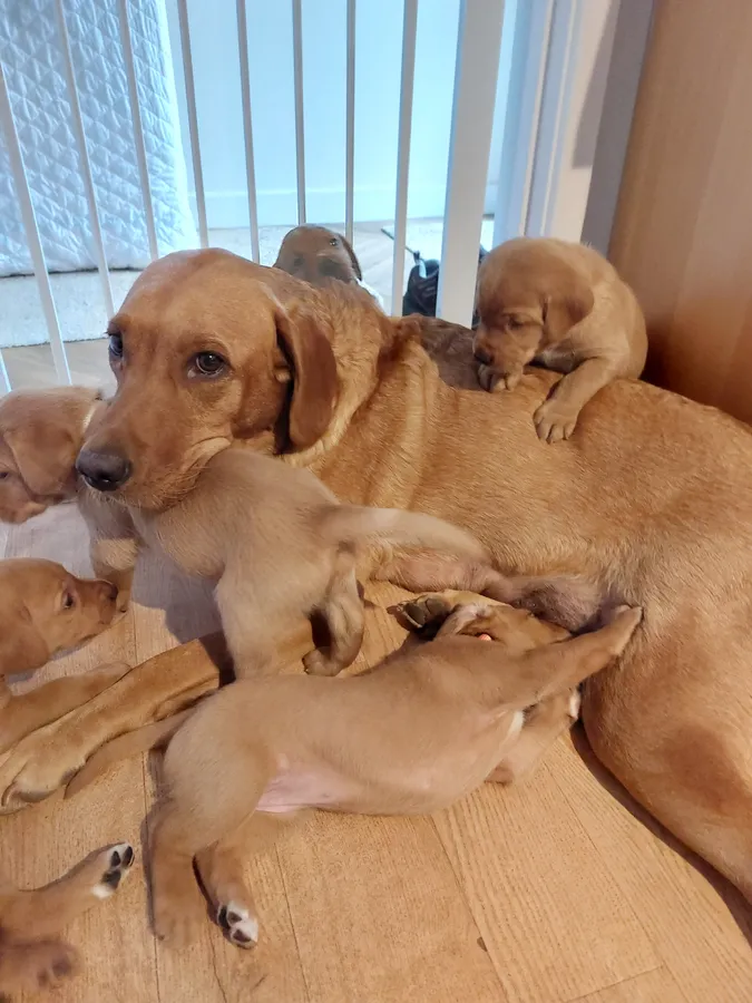 Stunning fox red lab pups working strain 2boys 2girls ready 8/11/2025 kcr g 1 boy and 1 girl left Dad kc reg tealmark zeno (Bert)