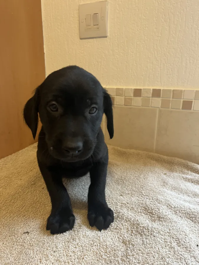 Dam (mum) is a Kc Registered black Labrador (Verrad Elvira). She has the most wonderful temperament. She has been a fantastic mother and a very busy one looking after 14.